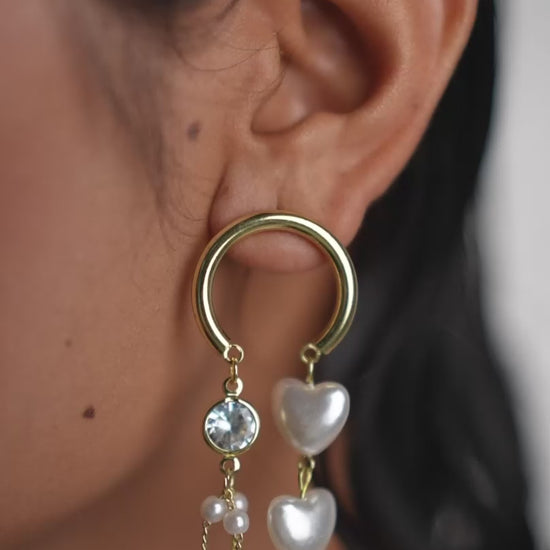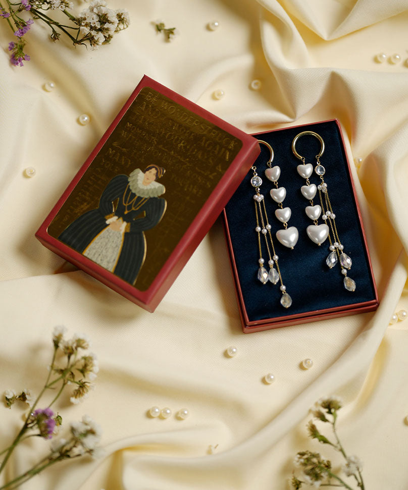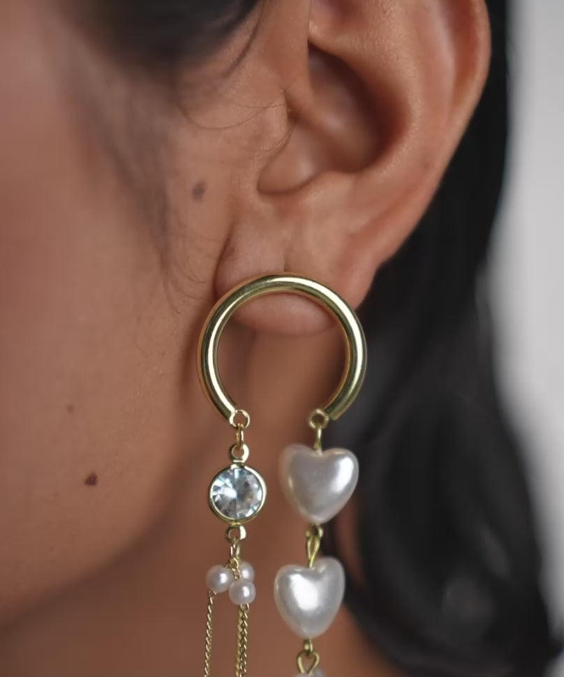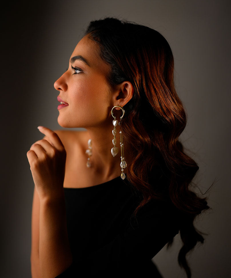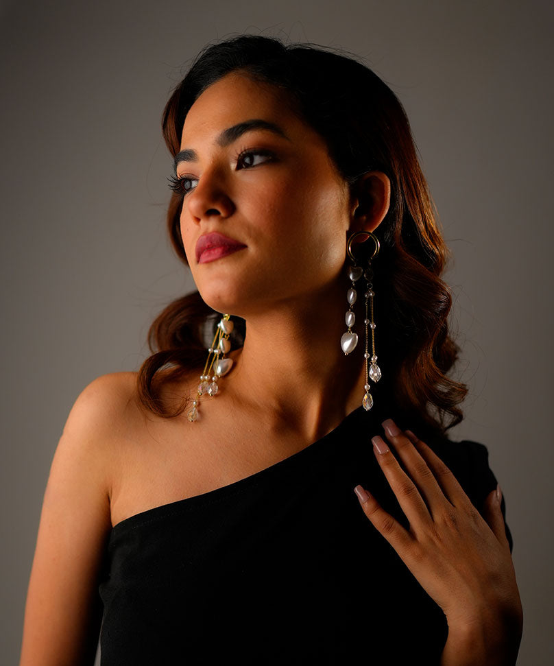 Raised on the foundation of well-acclaimed vaudeville humor, ‘Another Man’s Wife and a Husband Under the Bed’, is an exciting short story that employs a lot of puns, well-written dialogues & characteristically hilarious ideas as well as people. To name a piece based on this story came rather naturally since so many elements come together in this beautiful and intricate piece of the Dostoevsky series, similar to the story. The earring is bi-parted, with two completely different-looking sections, giving a rather fresh outlook in terms of design and structure. The gold (imitation) and pearl combine to create a delicate and detailed piece that truly will enamor the beholder, even before the self. Adding a precious little piece such as this is a wonderful thought, one that holds nothing under covers, but good-intentioned spouses and compliments.