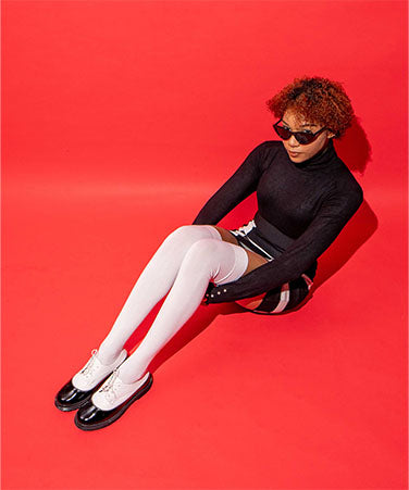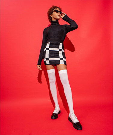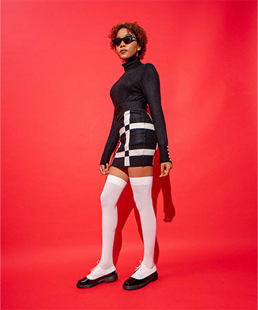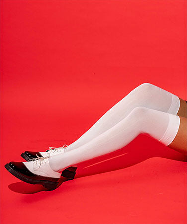 Walk the talk in our ARCTIC THIGH HIGH stockings that are anything but basic. These find the perfect balance between preppy and poised. Knitted with a high gloss finish, these stockings are size inclusive & are designed to enhance your flawless legs. Pair them with chic sandals, a skirt, and an oversized blazer for an effortlessly polished ’fit.