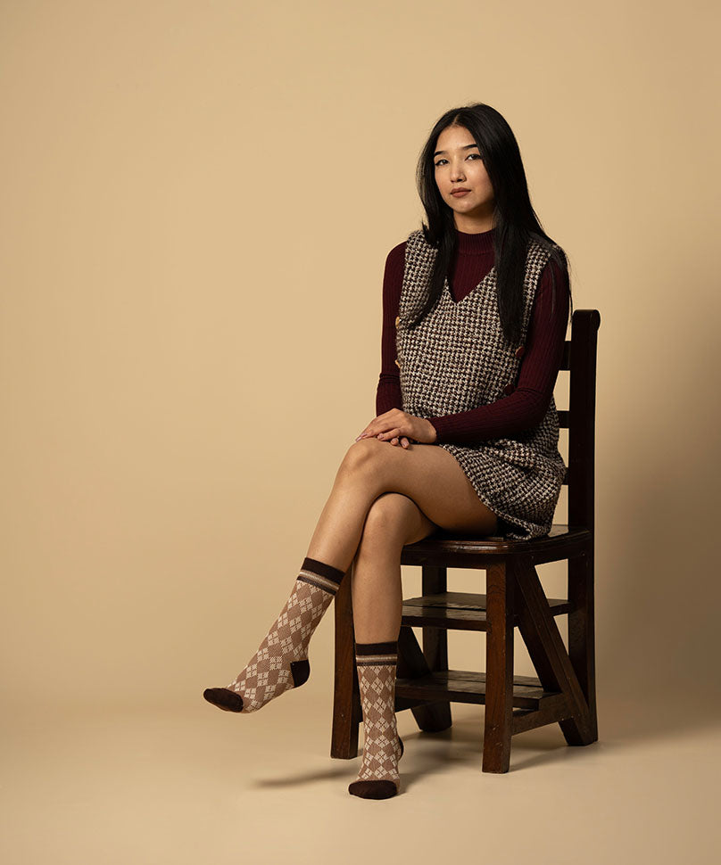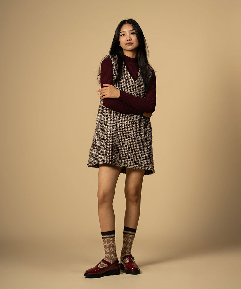 Full of eccentric color, intricate details, and an overall early days charm, Argyles is a piece to look out for. Made undeniably well with all the drama intact, both musical and this pair are a promising addition to one’s days. Well pictured with a pair of oversized shirts as well as jumpsuits.