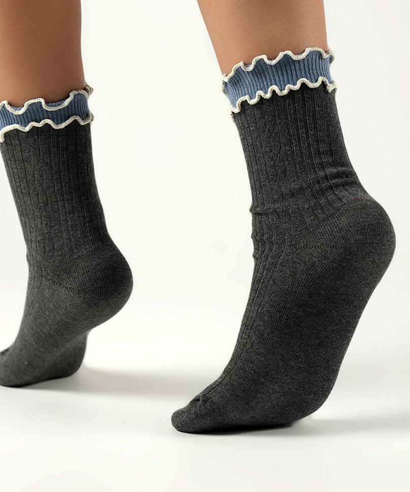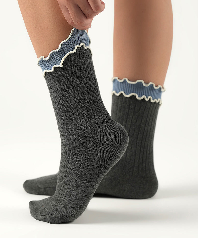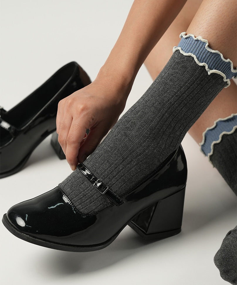 All good girls have names like that! Lisa is a beautiful and detailed pair of socks, made to up your ideas and style games now and then. The frill detail with the brown contrast adds character that surely will pay off when paid attention to.