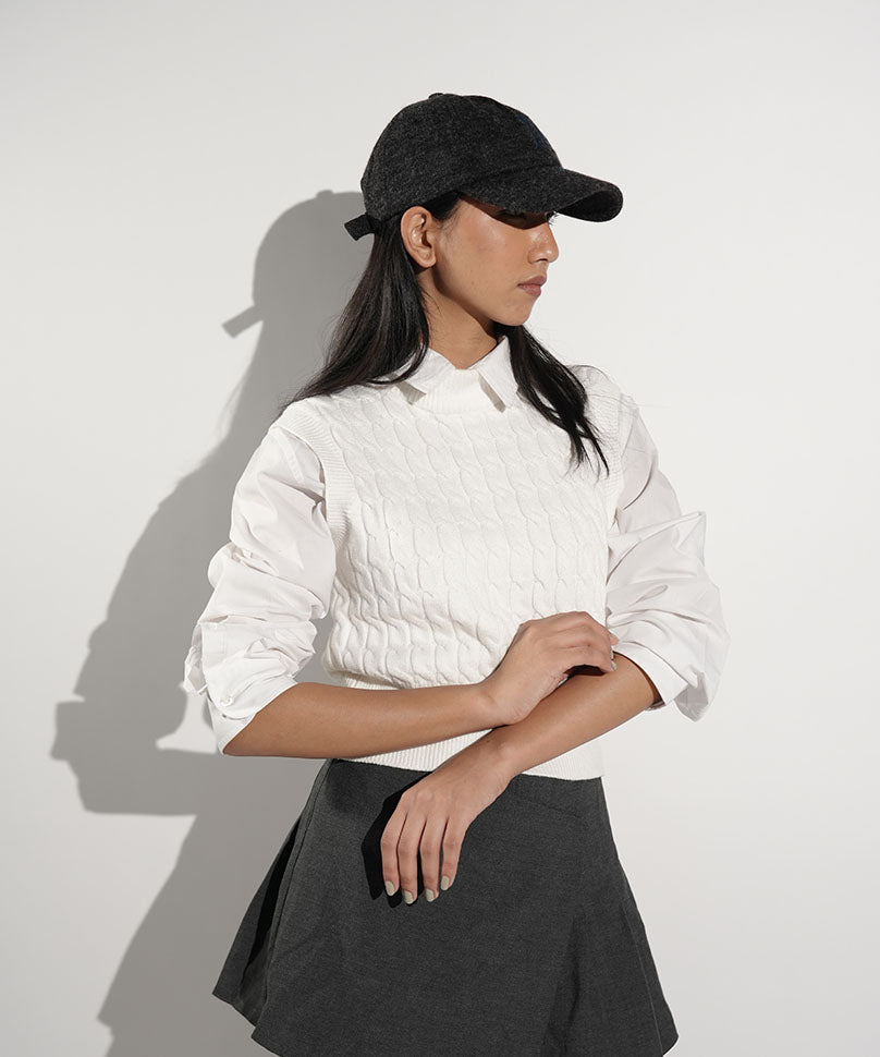 Charcoal grey - Perfect to pair with an assortment of bright colours out in the field, Charcoal grey is the perfect top-up for any seasonal fit. The grey plays well with a murder of colours, as well as that chic monochromatic look. The material is soft to the touch and easy to wash. There is an adjustable buckled strap at the back.
