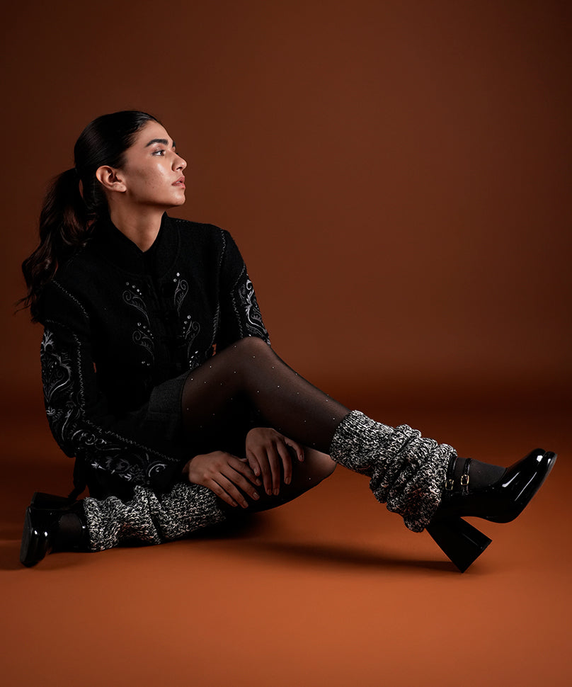 Sharp, versatile, and effortlessly minimal — the Black Melange Ribbed Leg Warmers add subtle texture while keeping your winter outfits grounded and sleek. A go-to choice for anyone who loves clean, all-black or neutral dressing.