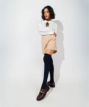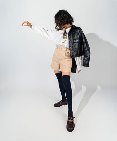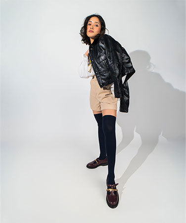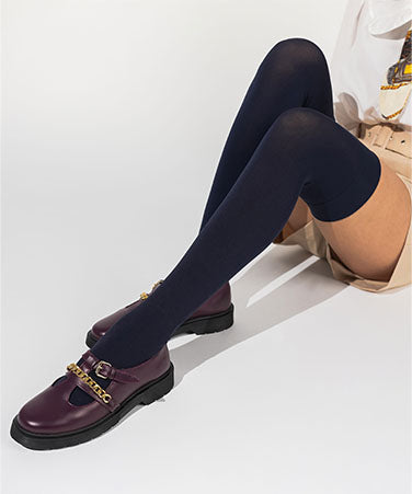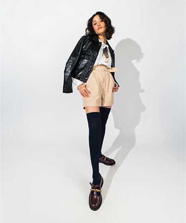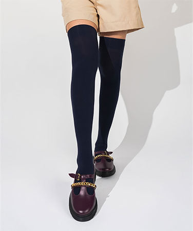 Staying true to our love for eye-catching colours and bold ’60s-reminiscent prints, these NEPTUNE THIGH HIGHS will inspire you to go-go dance your day away. Knitted with a high gloss finish, these stockings are designed to enhance your flawless legs. Match them with a white dress and pumps for a modern take on the trend.