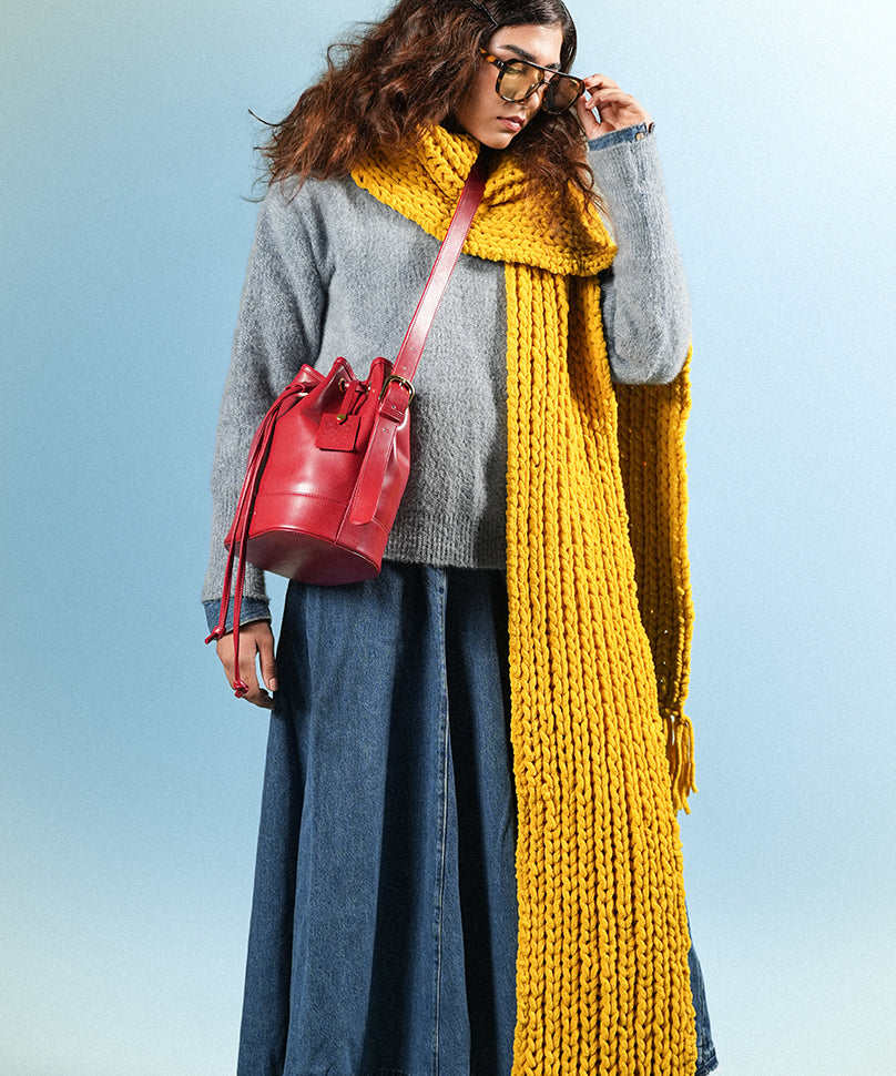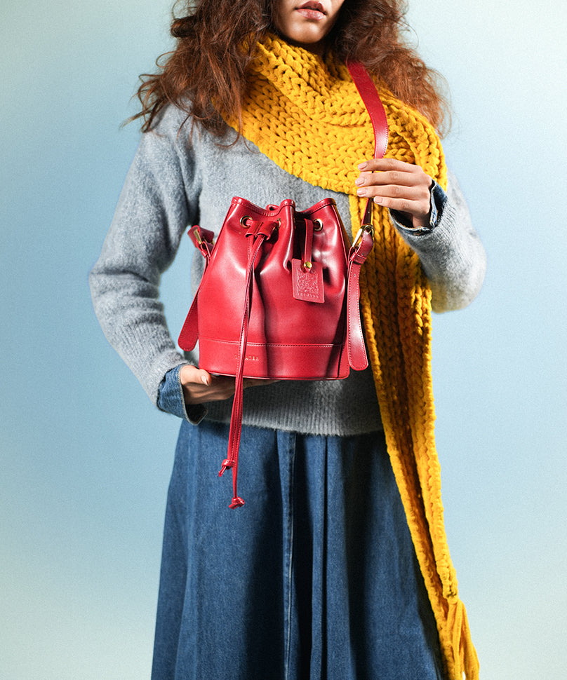 Sangria is the much-needed ‘breath of fresh air’ that keeps one on the edge of their styling streak — now reimagined in a rich red leather finish that elevates your everyday wardrobe with effortless finesse. With its classic bucket silhouette and refined gold-tone detailing, this version of Sangria adds a modern, versatile edge to both casual and curated looks. A remarkable blend of simplicity and sophistication, this bag is sure to become a treasured staple in your collection.