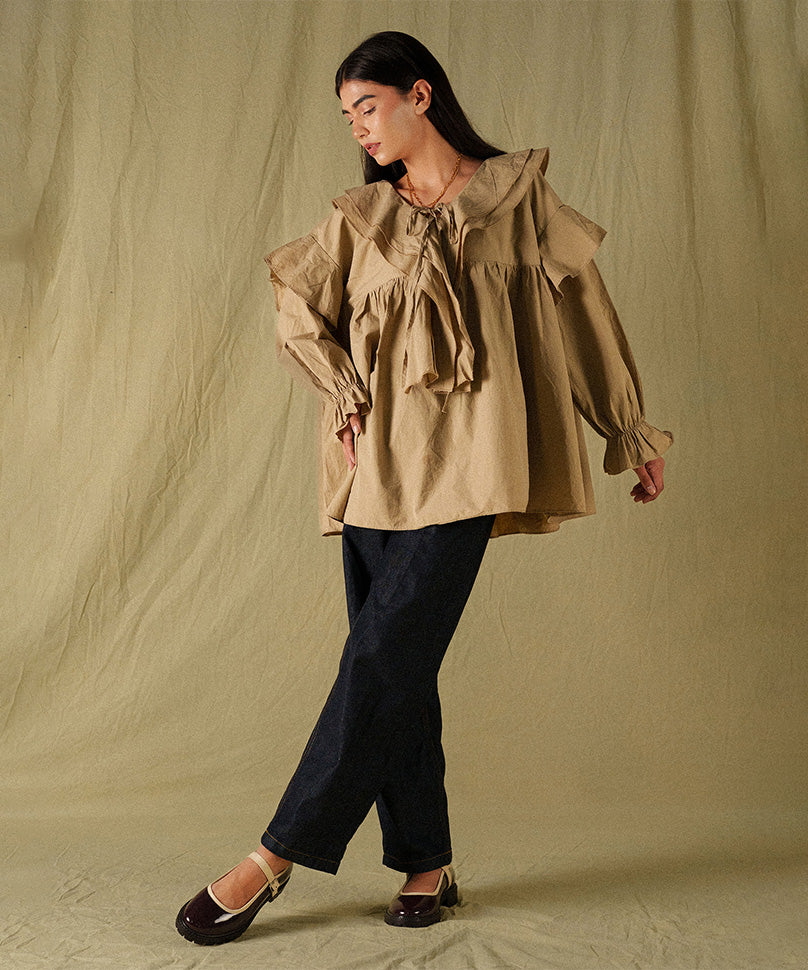 Beanie with Flap - Brown