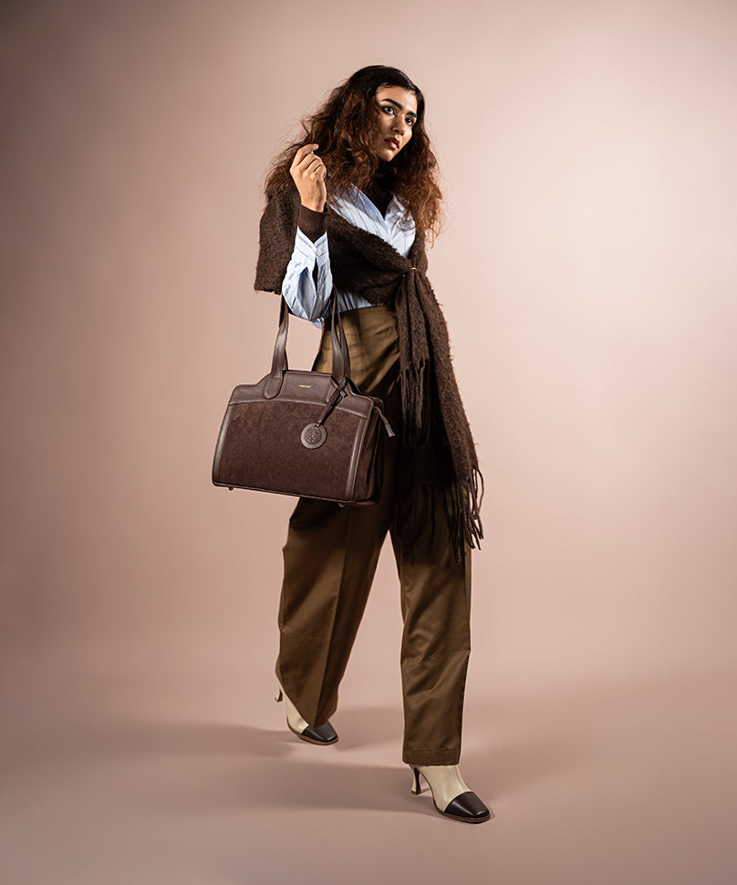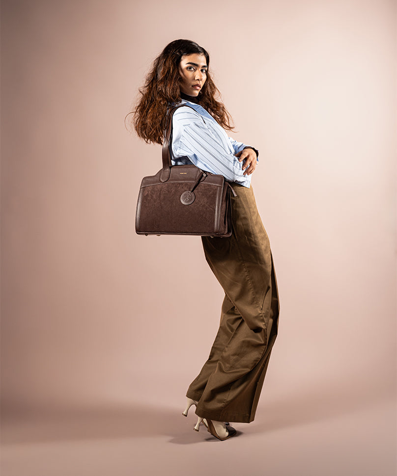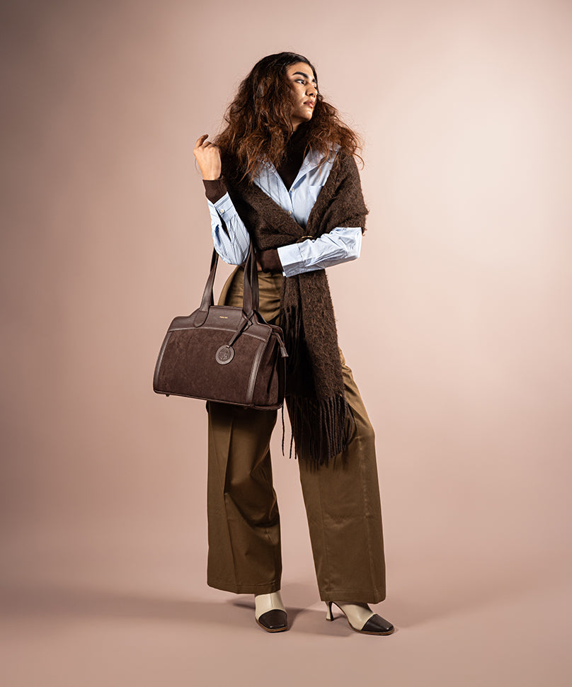 Corbusier is understated, structured, and thoughtfully designed for everyday sophistication. Crafted from a blend of faux suede and faux PU, this shoulder bag features clean lines, a soft yet defined silhouette, and a refined brown finish that pairs effortlessly with any wardrobe. With dual compartments and a functional interior layout, Corbusier balances elegance with practicality—making it a reliable companion for workdays and beyond.