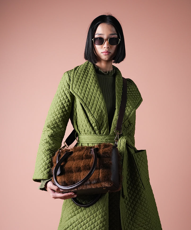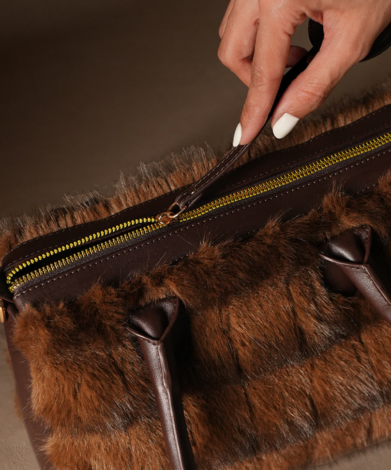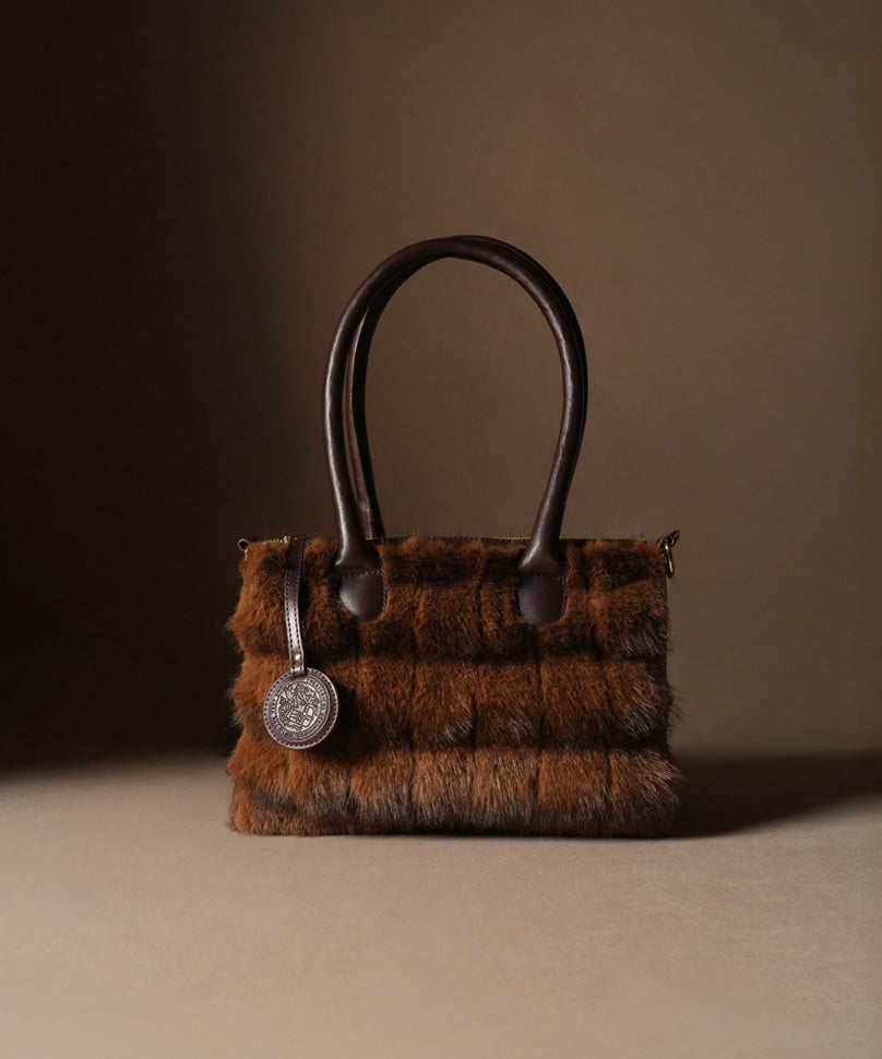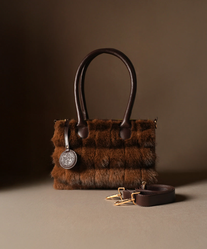 • Store the fur handbag in a cool, dry place to protect the fur’s quality. Regularly comb the fur to keep it soft and shiny, and clean gently with a damp cloth if needed.