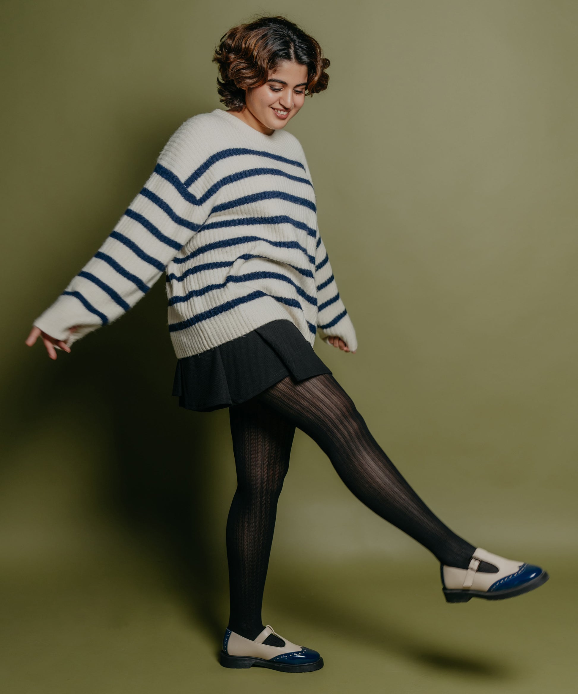 Some trends never go out of style which is why our “Unchain Stockings” is a staple piece that you need to add to your collection. Stripes, solids, and a will to discover something new, pair very well with these linear patterned pair of stockings.