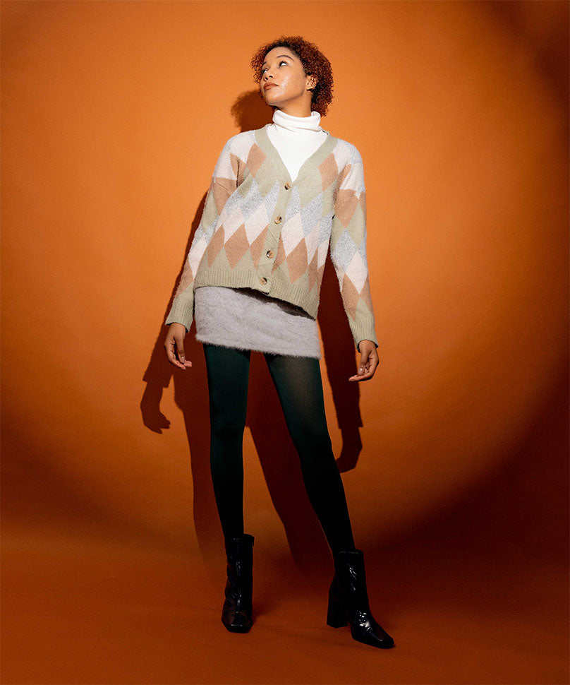 We see these paired perfectly with a tweed coat, body con skirts, and come fitted pumps.
